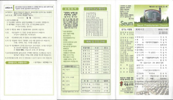 251228 교회주보 세움교회 2025-12-28 21:06 5 0 - 첨부파일 : 251228 교회주보 앞면.jpg (478.1K) - 다운로드 0 2025-12-28 21:06:52 - 첨부파일 : 251228 교회주보 뒷면.jpg (516.8K) - 다운로드 0 2025-12-28 21:06:52 다음글 목록 본문 251228 교회주보 댓글목록0 등록된 댓글이 없습니다.